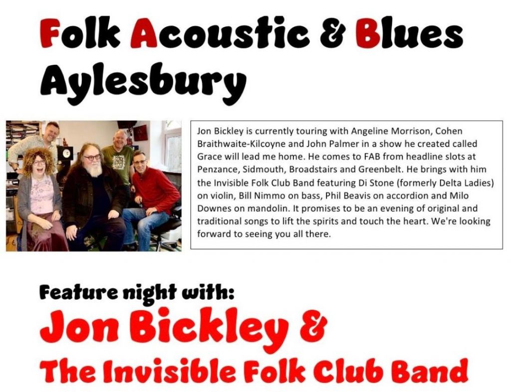 Friday 5th December: Feature Night with Jon Bickley & The Invisible Folk Club Band